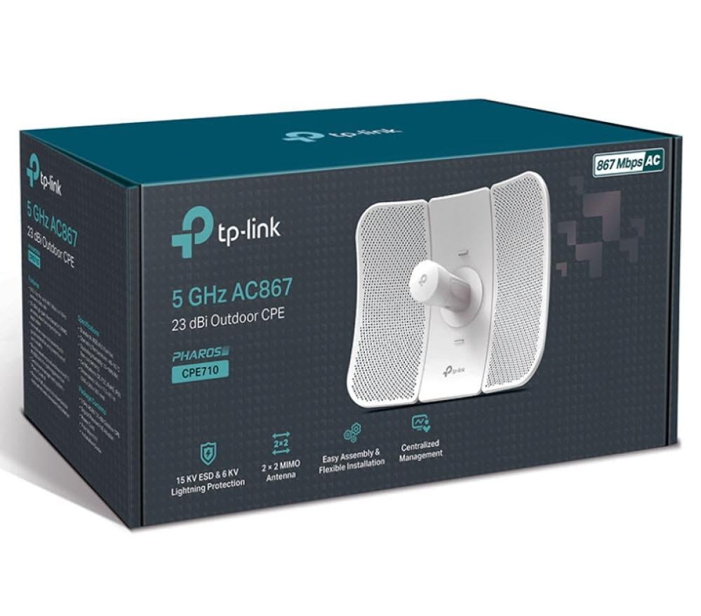 بفضل هوائي كاسيجرين عالي الكسب بسرعة 23 ديسيبل والعاكس المعدني المخصص، يوفر هوائي CPE710 اتجاهية شعاع ممتازة، وزمن تأخير محسّن، ومقاومة ضد الضوضاء. فضلاً عن الأداء الاحترافي، إلى جانب التصميم سهل الاستخدام، ما يجعل جهاز CPE710 للاستخدام الخارجي بسرعة 5 جيجاهرتز، و867 ميجابت في الثانية، و23 ديسيبل خياراً مثالياً وحلاً فعالاً من حيث التكلفة لتطبيقات الشبكات اللاسلكية الخارجية طويلة المسافة